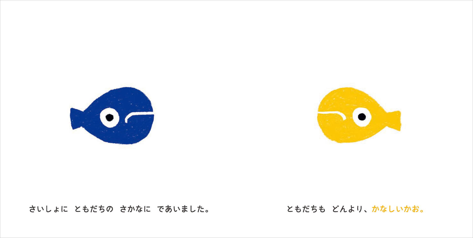 その言葉に導かれて、本をくるりと反対にしてみると…わっ!かなしみに沈んでいた海が、笑顔あふれる“たのしい海”に変わります。見方を変えると、まるで別の世界が広がる。絵本を逆さに読むという体験を通して、そんな素敵なメッセージが自然に伝わる一冊です。------------------------------------------「しょんぼり」「うちひしがれて」「夢も希望もない」——悲しみを表す言葉が並ぶページでは、感情を表す言葉の豊かさに気づきます。そして反対は…「うきうき」「はりきってる」「夢いっぱい」——楽しさをあらわす言葉を、今度はきみが探してみてね!