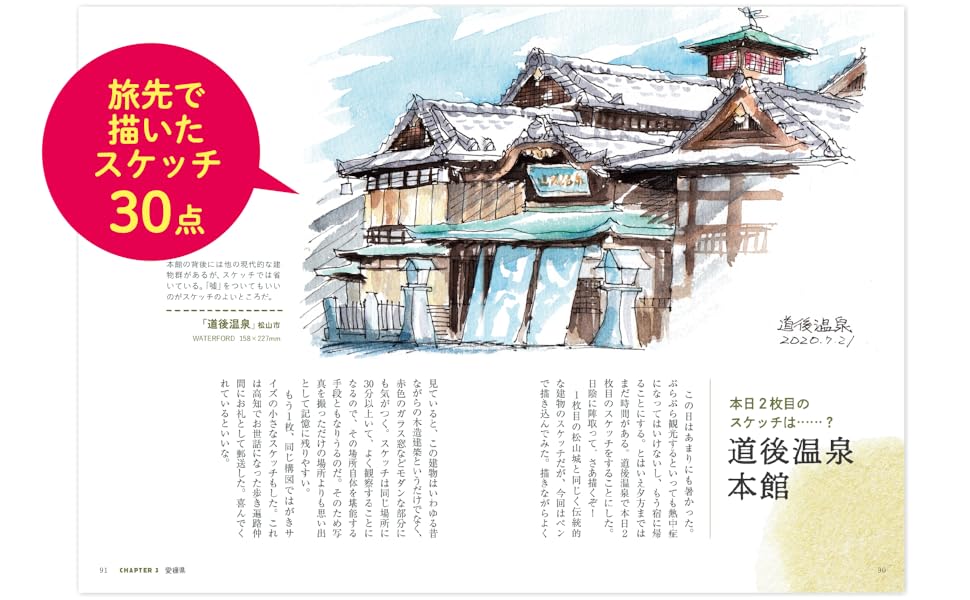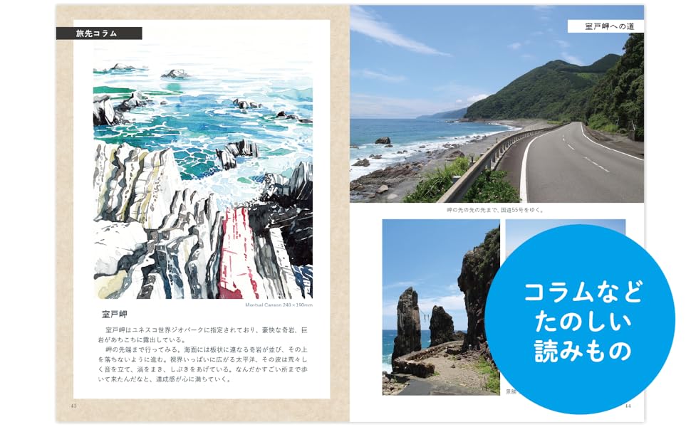 歩き遍路をしながら水彩スケッチを描く、「スケッチ遍路」の旅日記。46日間を歩き通すなかで描いた約30点の水彩スケッチと、それにまつわるエッセイを収録。●全ページフルカラー旅先でしか感じられない風や光を思いのまま描いたスケッチは、旅情たっぷりで、写真とは異なる味わい深さが魅力。描くのは寺院だけでなく、山、海、道、人…と多岐にわたり、その色遣いや筆遣いから、清々しさや重々しさなど、著者のさまざまな心情が伝わってくる。たくさんの景色と出会ったことで感じた思い、人生のヒントを丁寧に綴る。現地で描いたスケッチの他に、「一日一絵」と題して、遍路旅を振り返りながら自宅で日々向き合ったスケッチも紹介。巻末には「スケッチ旅をしてみたいと思った人へ」、遍路へ行くための持ち物や注意事項などを記した「お遍路基本情報」、札所の地図と一覧付きで、ガイドブックとしても充実の一冊。
