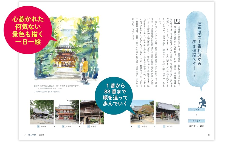 歩き遍路のための基本情報も網羅! スケッチ旅のコツも掲載。
